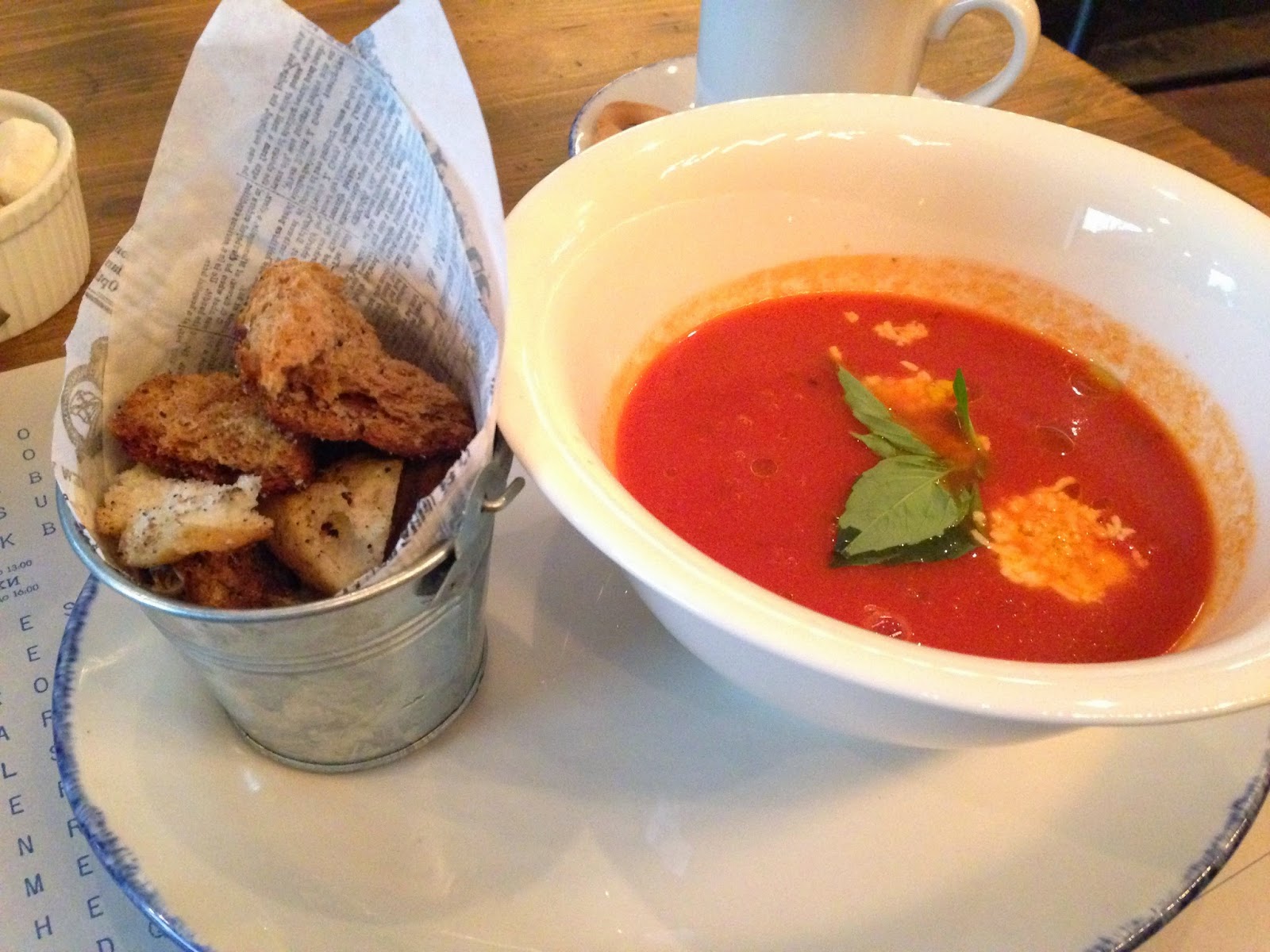 Сочетание томатов, моцареллы и базилика — любовь навек. Меня хлебом не корми, а дай сойти с ума от аромата пряной травы, мякоти томатов и тягучего сыра. Правда, возвращаясь к нашей теме супов, кроме веганского борща и овощного супчика что-то другое я не воспринимала всерьез. Да-да, глупая голова! Ну вот пришло время Пряного супа. Нет, это не похоже на томатный сок с приправой из пакетика. Нет, это не томатная паста с водой и стружкой сыра. Это... Как бы так описать... Суп-пюре! Лучшее, что когда-либо изобретало человечество. Особенно для меня, любителя поковыряться в тарелке. Настоящие перетертые томаты, отголоски пряностей, спрятанных в недрах суповой пучины, тонкий вкус моцареллы и сухари с чесночком, ибо какой суп без сухариков! Все как детстве, только утонченно вкусно.