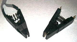 Сравнительно недавно стал доступен еще один вариант, отлично подходящий для корпусов типа SOIC. Представляет он прищепку, оснащенную контактными пластинами. Установленная  на распаянную микросхему, прищепка обеспечивает электрический контакт. В итоге ее можно использовать как для  программирования, так и для измерения сигналов с выводов.