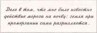 Если разломить промерзший кусок земли, то он весь искрится от пронизавших его кристалликов льда. Эти кристаллики, расширяясь, разрывают спайки почвенных комков, отодвигают их друг от друга, и сами комки при этом уплотняются. Так восстанавливается почвенная структура. Почва из слежавшейся сама собой делается пористой, и совсем необязательно ее для этого лопатить.