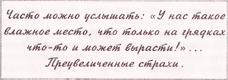 Сомневаюсь, что у вас более влажное место, чем у нас. На месте наших участков раньше было лесное болото. Почва была такая, что копнешь на штык лопаты — и стоит вода, под ней сизая глина. Сейчас стало получше из-за небольшого поднятия почвы, но все равно сыро. А растения очень даже неплохо растут, причем любые и без грядок.
