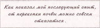 Я не отрицаю перекопку как таковую. Дикую дернину, которая вам досталась на только что приобретенном участке, можно и перекопать. Я сам в некоторых случаях возьму и перекопаю отдельную грядку, и это совсем не трудно, даже доставляет удовольствие. Дело в том, что почва, которая год за годом содержится свободной от сорняков, перекапывается легко, чуть ли не без участия ноги.