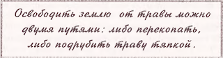 Поскольку корни сорной травы могут распространяться далеко в стороны, держать междурядья заросшими травой, как это обычно делают, очень нежелательно. Под землей корни травы соприкасаются с корнями наших посадок.