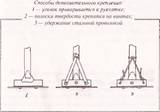 Затем понадобится дополнительное крепление рукоятки и уголка, чтобы лезвие не шаталось. Подходит какой-либо из приведенных выше трех способов.