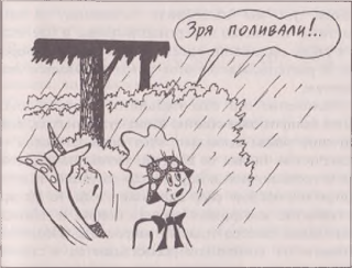 Однако в июне нам надо беречь воду — так не защитить ли почву от перегрева рыхлением? На самом деле, проблемы никакой нет, все устраивается само собой. Весной и в начале лета растениям для ускоренного роста совершенно необходим нагрев почвы. Ведь, несмотря на жару снаружи, весенняя почва хранит зимний холод. И мы позволяем почве сколько угодно нагреваться на солнце, не боимся иссушения, потому что влаги в ней еще предостаточно, а сами растения, заметим, еще маленькие и не закрывают почву от солнца. В разгар же лета растения раскидываются и закрывают почти всю поверхность земли, затеняют ее, тем самым сохраняя влагу, зато в это время почва уже достаточно прогрета. Как видим, никакой сухой полив не нужен, все регулируется само собой.