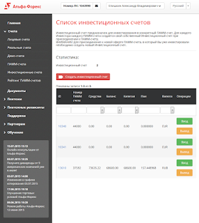 3). Вклады в ПАММ-счета. Это довольно доходные инвестиции которые могут Вам принести более 100% годовых от вложения. Но есть несколько нюансов. В разные месяцы бывают разные доходы. Тот кто руководит ПАММ-счетом заберет себе половину от того, что было наторговано. Если Вы вложили 100 000 рублей и через год у Вас на счете будет 180 000 рублей. То скорее всего заберете вы 140 000 рублей. В любом случае это выше вложений на депозит в банке. А мы еще хотим на этом заработать. Открываете ПАММ-счет в Альфа-Форекс https://goo.gl/CUHWDy. Открываете лицевой счет, пополняете счет. Затем переходите по ссылкам «Счета», «Рейтинг ПАММ-счетов». Выбираете ТОПовый счет и делаете инвестицию. Я бы Вам порекомендовал счет «Сокровище драконов». Работает давно, ведет группу Вконтакте https://vk.com/dragontreasures, есть обратная связь.