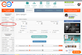 Заводим деньги в Webtransfer. Получаем кредит на Арбитраж и все полученные деньги выдаем в кредит по 50-100 долларов. Срок кредита не менее 21 дня (рекомендовано, Вы можете выдавать хоть на 1 день). Соответственно «Кредит на Арбитраж» вы берете ровно на один день больше. Если выдали в кредит на 21 день, то кредит на арбитраж Вы берете на 22 дня. Процент выбираете от 1,4 до 1,7 в день. Процент выбирайте такой же как и средняя ставка по статистике.