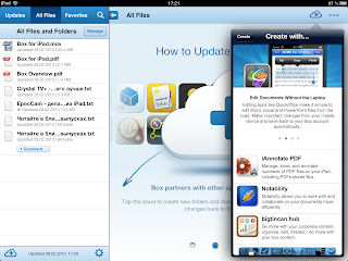 Заметим, что как таковое обновление уже сохраненных в Box документов осуществить не получиться ни одним из способов, так как при импортировании документов или фотографий они сохраняются отдельными файлами. То есть если, допустим, вам нужно исправить какой-либо текстовый файл, вам потребуется открыть его в текстовом редакторе поддерживающем импорт из Box сохранить его в устройстве, внести правки и после этого экспортировать в приложение Box, которое сохраняет второй файл с таким же именем. После этого вы удаляете старый файл из Box, и новый из текстового редактора в котором вы вносили правку, и на этом процесс можно считать законченным. Может ли быть такая сложная система удобна на практике? Сомневаюсь.