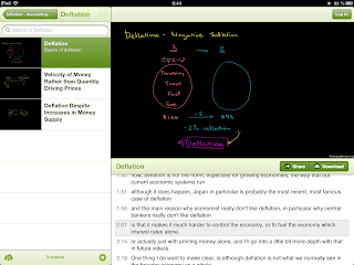Само приложение тоже сделано довольно неплохо. Все видеоролики можно скачивать в iPad, и смотреть даже тогда когда нет доступа в интернет, кроме того ссылками на любой их них можно делиться через Facebook или Twitter. Почти все из них имеют удобные субтитры, которые не исчезают после того как проговариваются в видео, а прокручиваются в виде ленты под окном видео, в которой можно успеть перечитать все что не успеваете глядя на доску. Если зарегистрироваться на сайте, то в дополнение ко всему приложение сможет следить за прогрессом в обучении. Приложение нормально работает как в горизонтальной, так и в вертикальной ориентации, видео увеличивается на полный экран и имеет кнопочку отматывания на тридцать секунд назад.