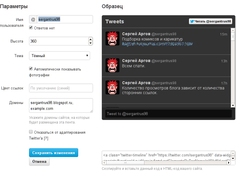 Твиты на блоге.
