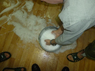 По приезду в университет должно состояться посвещение, на котором коробкой "по 6" - 6 человек в шеренге, а всего шеренг было около 16, надо ровно пройти строевым шагом от начала плаца и до конца (около 100 метров) не сбив равнения. Тренировались около часа - в конце тренировки пот лился ручьем, нетерпелось посетить холодный душ. Сейчас мы готовимся к параду и тренировки - 2 часа, но и то уже кажутся ерундой.
