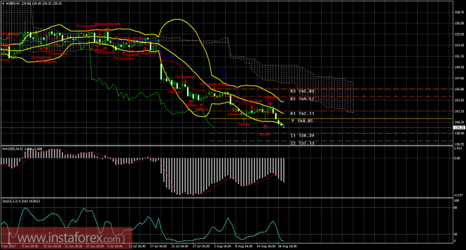 На младшем графике рекомендуется рассматривать ордера на продажу с целями 138,39 и 137,13 при закреплении цены ниже 141,44(Тенкан-сен) и уровнем S/L выше 141,44. Уровень S/L достаточно далеко, поэтому с шортами нужно быть предельно осторожными.