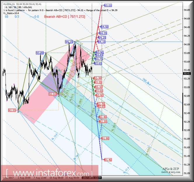 #USDX h1. Варианты развития движения с 22 августа 2017 г. Анализ APLs & ZUP