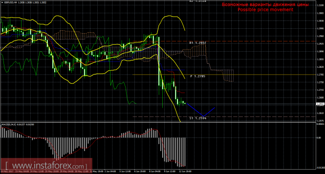 Красная линия и гистограмма с белыми барами в окне индикаторов.Материал предоставлен компанией InstaForex - www.instaforex.comТехнический анализ и торговые рекомендации по валютной паре GBP/USD на 13 июня 2017 года