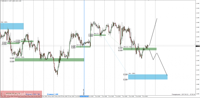 2017-06-12 07:59:33 (читать в оригинале)На прошлой неделе пара сформировала среднесрочную зону накопления. Целью снижения курса является недельная КЗ 1.1116-1.1100. Целью восходящего движения остается месячный максимум.