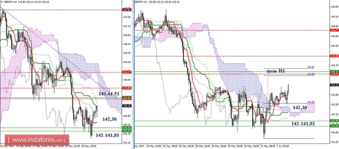 На младших таймах игроки на повышение вчера вернули себе краткосрочную поддержку Н4 и долгосрок Н1. Данные уровни сегодня являются поддержкой младших таймфреймов (Тенкан Н4 142,30 + Сенкоу Спан Б Н1 142,26). Ориентиром для продолжения подъёма сейчас служит повышательная цель Н1, исполнение цели приведёт пару к сопротивлениям старших таймов (143,44-51).
