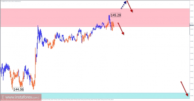 Красная линия и гистограмма с белыми барами в окне индикаторов.Материал предоставлен компанией InstaForex - www.instaforex.comТорговый обзор на 24 мая по упрощенному волновому анализу