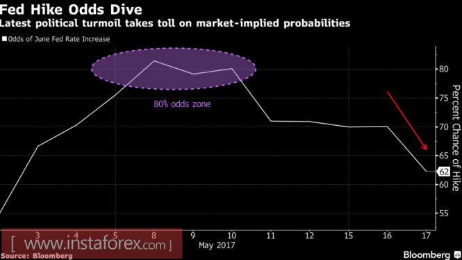 Стоит ли доллару выбрасывать белый флаг? Если неприятная история с Трампом не будет стоить выеденного яйца, то внимание инвесторов вновь переключится на ФРС. При этом готовность регулятора к сокращению баланса и восстановление экономики США во втором квартале заставят хедж-фонды повернуться лицом к американской валюте. Остается надеяться, что скандал быстро утихнет. В конечном итоге врагов у нынешнего президента хоть отбавляй, а от историй с передачей секретных сведений и записки для Джеймса Коми очень плохо пахнет.