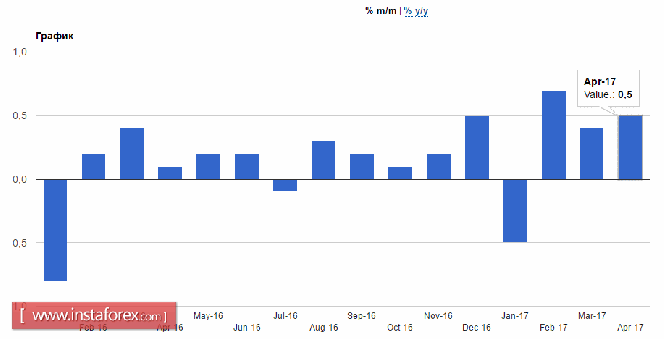 Согласно отчету Национального бюро статистики, в апреле 2017 года индекс потребительских цен в Великобритании вырос на 2,7% по сравнению с аналогичным периодом 2016 года после роста на 2,3% в марте. Данные полностью совпали с прогнозом экономистов. По сравнению с мартом этого года цены выросли на 0,5%, что немного превысило ожидания.