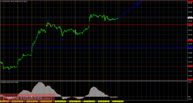 На младшем графике рекомендуется рассматривать ордера на продажу с целью 148,94 при открытии ниже 151,22 (Тенкан-сен), ордером Stop Loss выше 151,22 и при направленном вниз MACD.