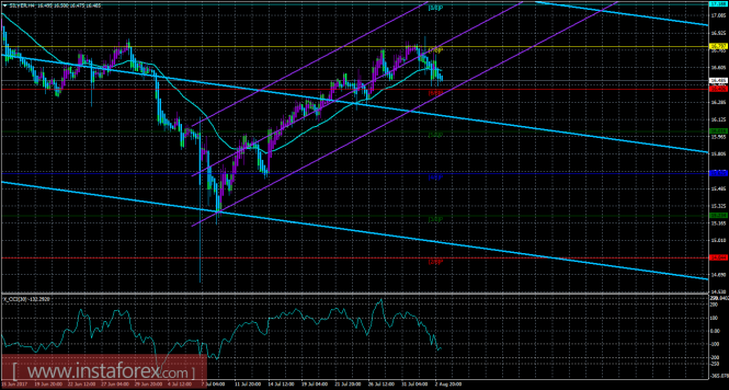 Материал предоставлен компанией InstaForex - www.instaforex.comТехническая картина инструмента SILVER по системе «Каналы регрессии» за 3 августа 2017 года