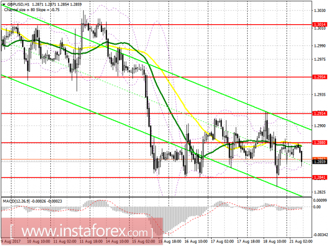 Рассчитывать на пробой и закрепление ниже 1.2841-35 и не рекомендую, так как сегодня отсутствуют важные фундаментальные данные, которые могли бы привести к формированию трендового движения. Неудачная попытка роста и возврат под уровень 1.2880 будет первым сигналом к открытию коротких позиций, но более оптимальный уровень для продаж расположен в районе 1.2914.