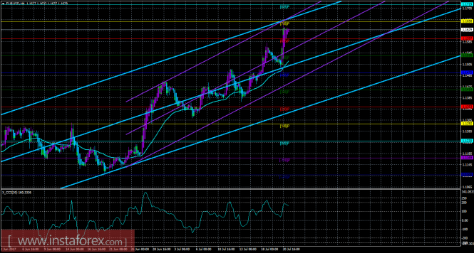 Хайкен Аши – индикатор, окрашивающий бары в голубой или фиолетовый цвета.Материал предоставлен компанией InstaForex - www.instaforex.comТехническая картина валютной пары EURUSD по системе «Каналы регрессии» за 21 июля 2017 года