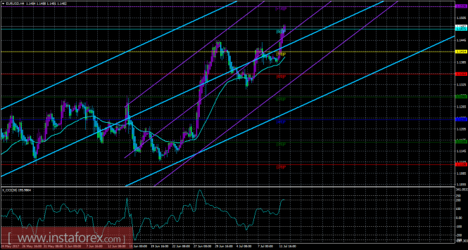 Техническая картина валютной пары EURUSD по системе «Каналы регрессии» за 12 июля 2017 года
