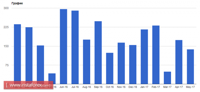 Но рынок продолжает упрямиться и считает, что это не так, потому что уже на рынке труда, по его мнению, наметились негативные тенденции. Майские цифры по занятости оказались очень неважными, а вышедшие в четверг значения от ADP невпечатляющими и хуже прогнозов. Это позволяет инвесторам полагать, что и выходящие сегодня официальные цифры от Министерства Труда США также могут быть слабее ожиданий. Но рынок не желает понимать, что трудовой ресурс в любой стране, включая и США, не бесконечен, а значит будет постепенное снижение нанятых на работу работников, при сохранении приемлемых темпов роста экономики. Кстати, важный показатель занятости количество заявок на пособие по безработице по-прежнему остается на уровнях начала 70-х годов прошлого века, что указывает на сильный рынок труда. И еще одна деталь. Ранее член ФРС Э. Розенгрен в декабре 2016 года сказал, что считает с учетом нынешней демографической ситуации любое количество новых рабочих мест выше уровня в 100 000 позитивным.