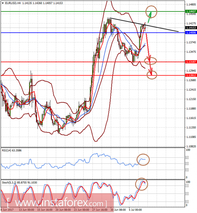 Пара EURUSD приостановила рост на фоне ожидания цифр по занятости из США. Если они окажутся позитивными, то пара может упасть к 1.1320 или даже к 1.1280 после пробития уровня 1.1400. Но если они будут хуже прогнозов, можно ожидать локального роста цены к 1.1460.
