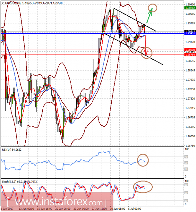 Пара GBPUSD торгуется выше уровня 1.2945, преодоление которого на волне позитивной статистики из США может привести к падению цены к 1.2890 и, возможно, к 1.2875. Но если они подкачают, тогда вероятен рост пары к 1.3030.