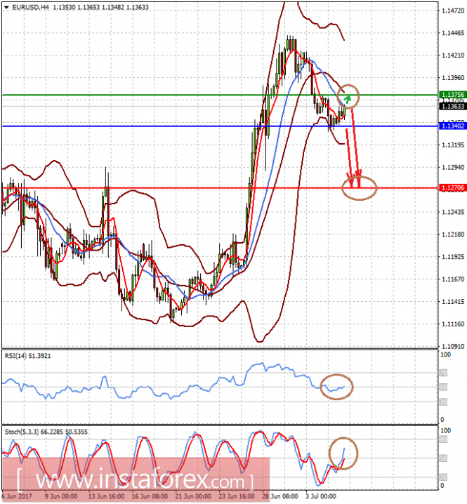 Пара EURUSD может скорректироваться вверх к отметке 1.1375-80, но, если она не вырастет выше нее, есть вероятность ее разворота вниз уже на фоне позитивного для американского доллара содержания июньского протокола заседания ФРС США. Мы ожидаем, что пара продолжит снижение, и считаем, что ее необходимо продавать либо на росте от 1.1375, либо на преодолении отметки 1.1340 с вероятным ее движением вниз к 1.1270.