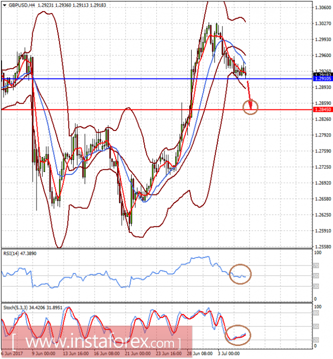 Пара GBPUSD торгуется выше уровня 1.2910. Также, вероятнее всего, она возобновит коррекционное снижение к 1.2845 после падения ниже отметки 1.2900-10.
