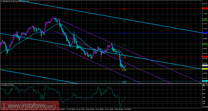 Материал предоставлен компанией InstaForex - www.instaforex.comТехническая картина инструмента SILVER по системе «Каналы регрессии» за 5 июля 2017 года