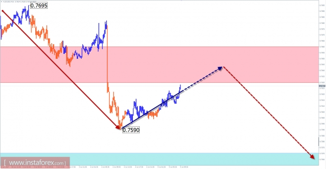 В последние дни на графике пары наблюдается нисходящий откат. Расчет предварительной зоны завершения позволяет ждать разворот в районе расчетной зоны поддержки.