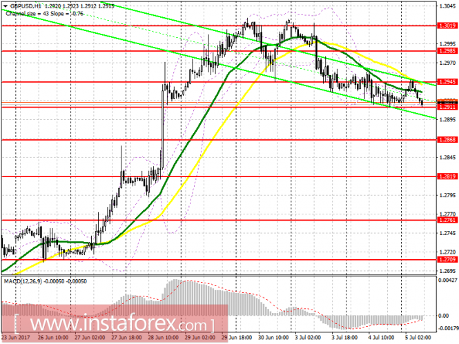 Покупатели могут вернуться в британский фунт сразу после закрепления на уровне 1.2945, что откроет прямую дорогу к середине канала 1.2985 и его максимуму 1.3019, где рекомендую фиксировать прибыль. В случае неудачной попытки роста выше 1.2945, покупки британского фунта лучше всего отложить до формирования ложного пробоя на уровне 1.291 либо сразу на отскок от новой крупной поддержки 1.2868.