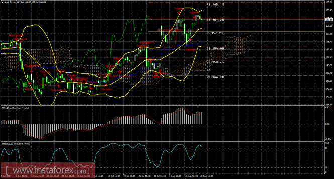 На 15-минутном графике рекомендуется рассматривать ордера на покупку с целью 165,11 при закреплении цены выше 161,26, ордером Stop Loss ниже 161,26 и при направленном вверх индикаторе MACD.
