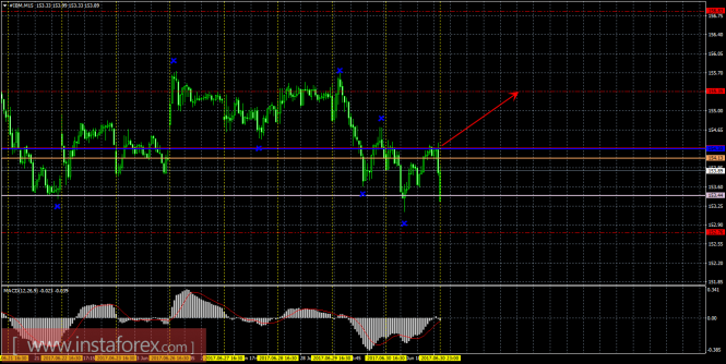На младшем графике рекомендуется рассматривать ордера на покупку с целью 155,35 при закреплении цены выше 154,30 (Тенкан-сен) и уровнем S/L ниже 154,30 и при направленном вверх индикаторе MACD.