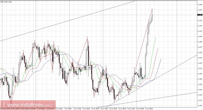 Итак, после полуторамесячной консолидации курс EURUSD вырвался на оперативный простор. Легко, не встречая сопротивления, EURUSD с 1.1180 долетела к утру среды до 1.1370 - 200 пунктов в 4-знаке за сутки. Был пробит наверх важный уровень 1.1300. После отката цель движения 1.1440-1.1460.