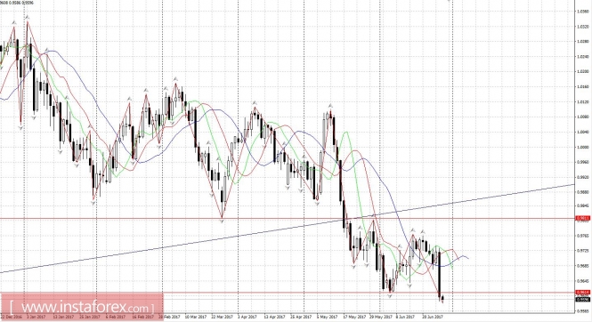 Курс USDCHF пробил вниз также уровень недельного масштаба 0.9614 - что предполагает продолжение движения. Фунт слабо, но также идет вместе против доллара.