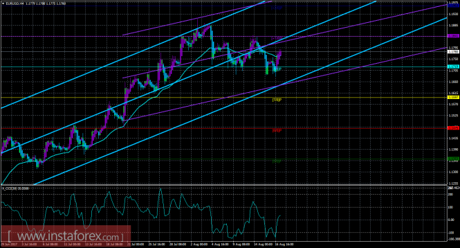 Хайкен Аши – индикатор, окрашивающий бары в голубой или фиолетовый цвета.Материал предоставлен компанией InstaForex - www.instaforex.comТехническая картина валютной пары EURUSD по системе «Каналы регрессии» за 17 августа 2017 года