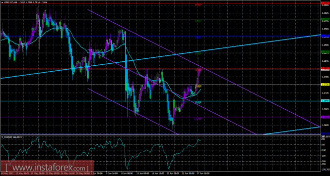 Техническая картина валютной пары GBPUSD по системе «Каналы регрессии» за 28 июня 2017 года