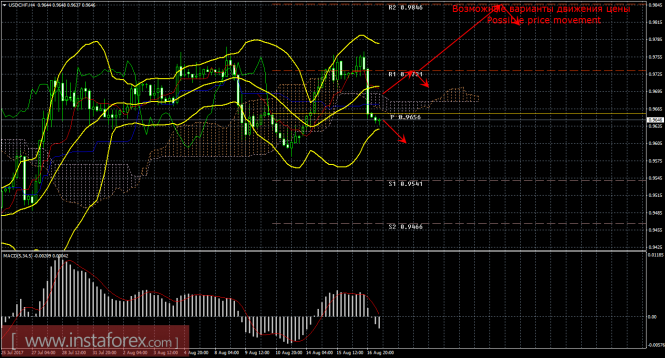 Красная линия и гистограмма с белыми барами в окне индикаторов.Материал предоставлен компанией InstaForex - www.instaforex.comТехнический анализ и торговые рекомендации по валютной паре USD/CHF на 17 августа 2017 года