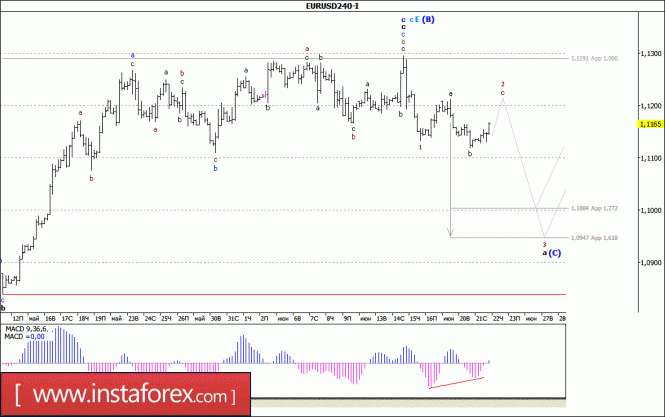 В ходе вчерашних торгов паре EUR/USD не удалось продолжить начавшееся ранее нисходящее движение, откатившись до конца дня к отметке 1,1170. При этом, несмотря на то, что валютная пара уже неделю остается в диапазоне между уровнями 11-й и 12-й фигур, можно предположить, что она по-прежнему находится в стадии формирования первых образующих волн в составе волны а, в будущей (С). Если это так, то после завершения текущей коррекции валютная пара может возобновить снижение котировок в направлении уровня 1,1000 или даже отметки 1,0950.