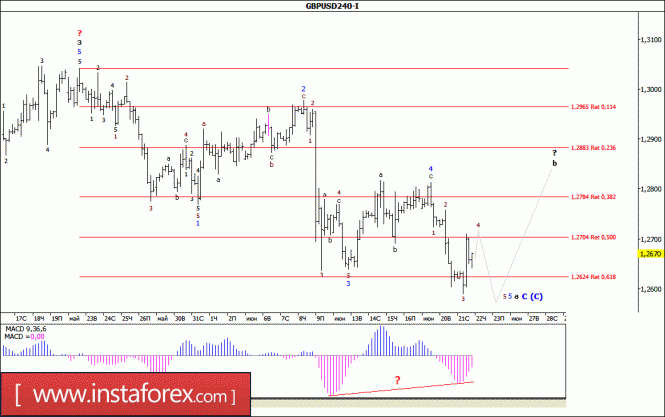 Волновая разметка предполагает построение восходящего набора волн. Волна с, в с, в с, в с, в Е, в B предположительно завершила свое построение. Таким образом, сейчас ожидается повышение котировок в рамках волны С с целями, расположенными около 98 и 99 фигур. Волна Е, в B может усложнить свою внутреннюю волновую структуру, но на данный момент выглядит укомплектованно.Материал предоставлен компанией InstaForex - www.instaforex.comВолновой анализ валютной пары GBP/USD за 22 июня 2017 года