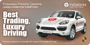 Компания ИнстаФорекс спешит сообщить своим клиентам, что до конца акции «Best Trading, Luxury Driving» осталось всего два месяца. 27 сентября 2013 г. определится обладатель роскошного кроссовера Porsche Cayenne. Этим счастливчиком можете стать именно Вы!
