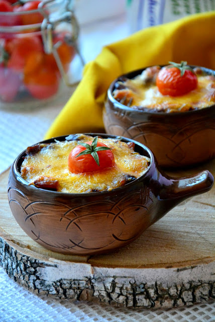 РИС С ГРИБАМИ И СВИНИНОЙ ПОД СЫРНОЙ КОРОЧКОЙ