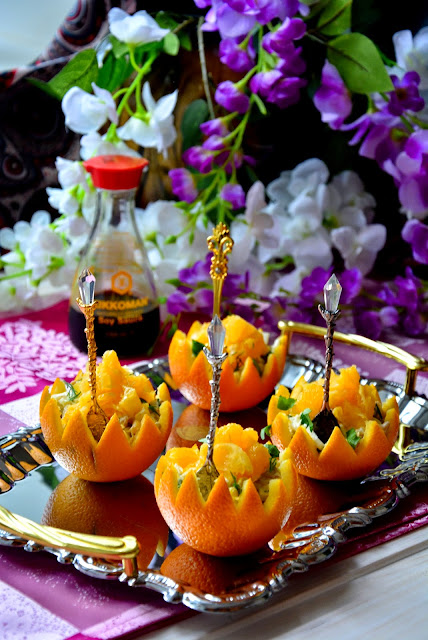 ПИКАНТНЫЙ САЛАТ В АПЕЛЬСИНОВЫХ КОРЗИНОЧКАХ