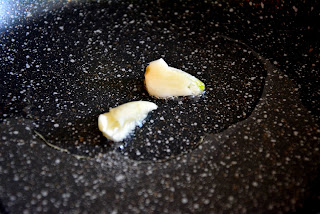 В оливковом масле обжарить раздавленную дольку чеснока, буквально минуту