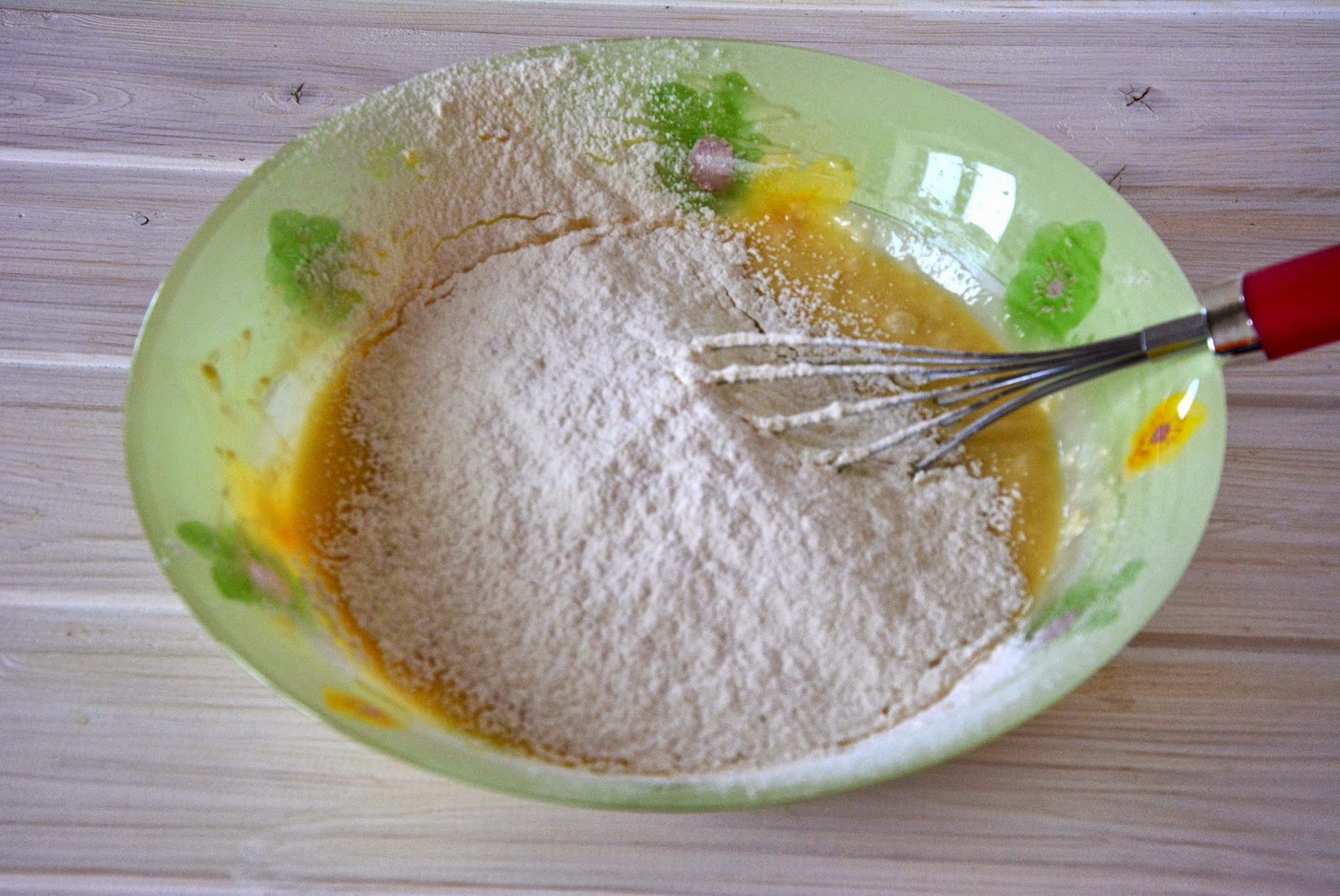 Всыпать муку с разрыхлителем, возможно муки потребуется немного больше, нежели указано