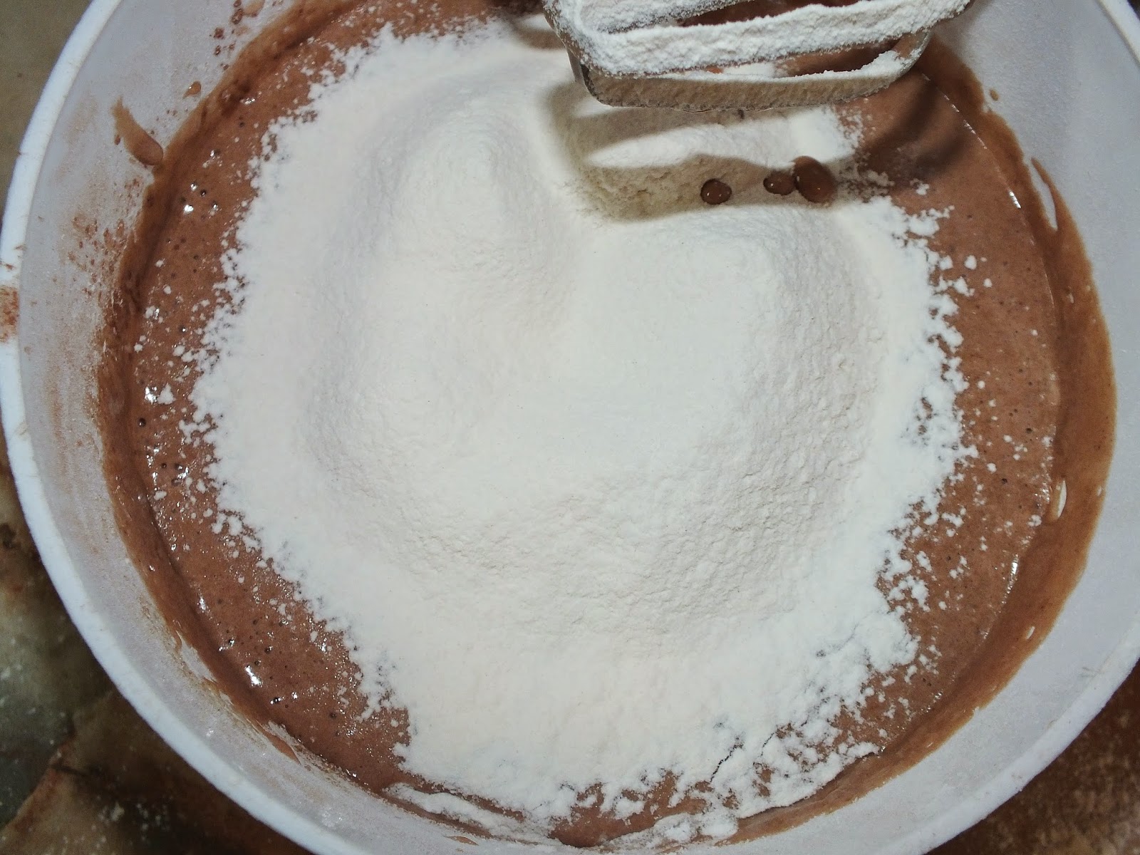 - Всыпать муку с разрыхлителем, взбить до однородности